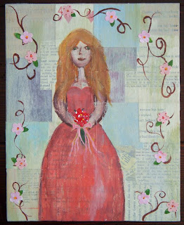 This latest incarnation is in the style of Kelly Rae Roberts, well at least the background technique.