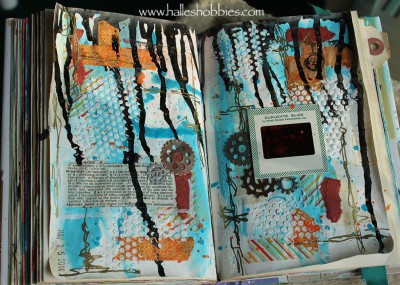 I enlarged the photo so I could see all the neat textures and detail–great page. Sorry to hear about your dryer–hope the Mr. can fix it–but I was happy to read that I am not the only one who shares craft space with the laundry room!