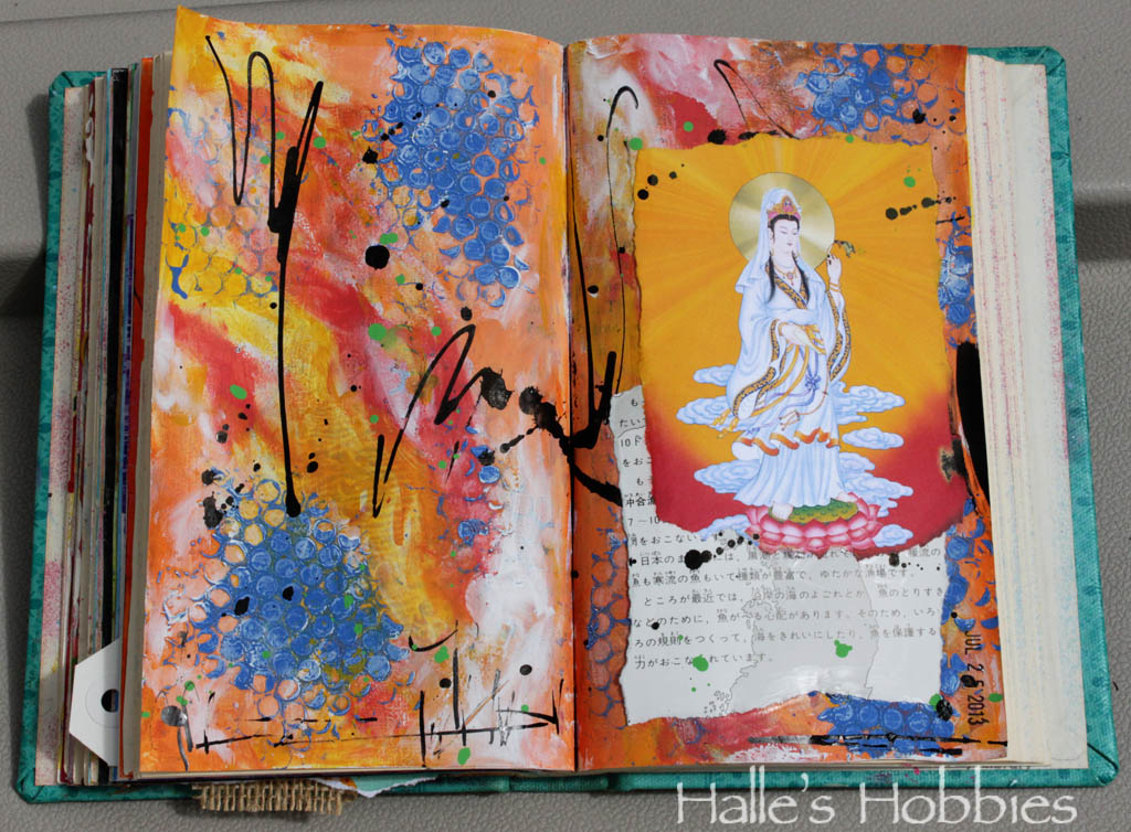 Love these pages Halle wondering if that is the Goddess Lakshmi on her Lotus flower… I am on the verge of making a lotus something with all the pix we took recently!