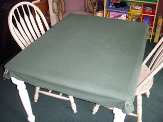 I bought some table padding  and green flannel at the fabric store. The grommets and ribbon to fasten it down were an afterthought. I was originally thinking that I’d use elastic like fitted bed bedsheets but I soon realized I was mistaken. That would have allowed too much shifting of the fabric.
