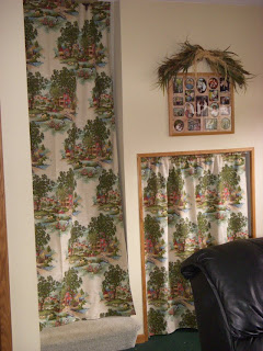 I’ve also sewn some curtains for an awkward cubby area and a matching curtain for the stairwell. Seems odd if you don’t own a split level home but the heat rises up the stairwell shutting off the thermostat therefore making the lower levels very chilly.  The curtain solves the problem. Thanks to my “always thinking” husband for that one!!