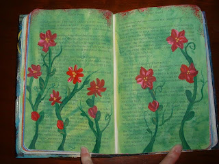 I nabbed this book off the free shelf at our local library, read it then decided to alter it. I first went about ripping pages out randomly. Then started painting…