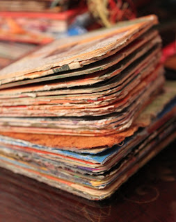 After that was dry, I used rubber stamps, more paint, markers, and stencils to create lots of background interest.