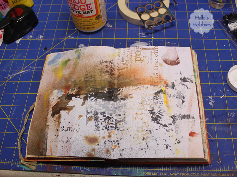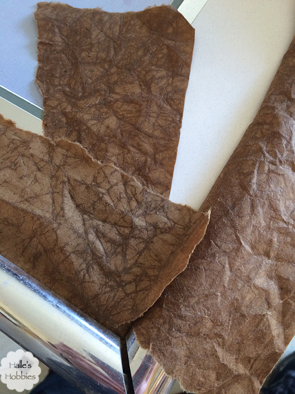 I tore random chunks and strips of kraft paper and soaked them in water while I got out my vinyl table protector(aka old ugly tablecloth). I used Golden polymer medium as adhesive to cover the chrome frame. This is the same stuff I used to renew my fridge and recycle cabinet with dictionary pages and it’s the same bottle I got for free at the recycle center!