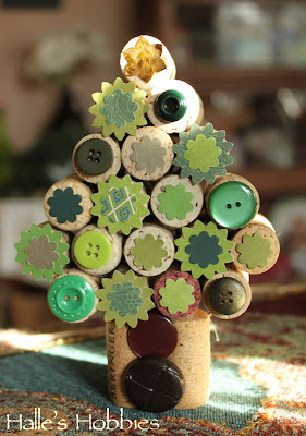 I showed a sneak peek of these a while ago. I made a wine cork tree last year but this time I decided to change things a bit. I used a Champagne cork cut in half for the trunk. I think they turned out really cute.