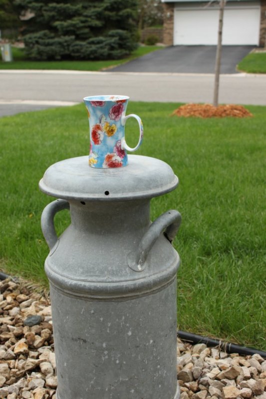 Due to my crazy busy schedule lately and all the rain we had last week, I never got further than my front yard with the traveling tea cup.