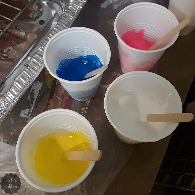 Sorry this one is blurry…I had paint on my gloves and couldn’t focus it. After flipping the cup onto the canvas I poured the excess white around the outside of the “unicorn poop” paint puddle. Amazing how many colors I already have.